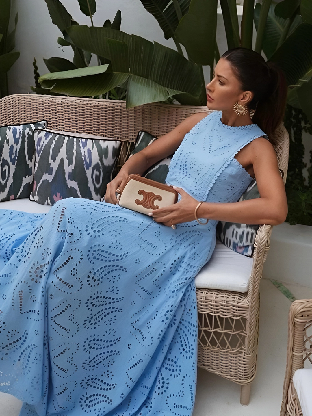 El Conjunto Laura es de 100% algodón con forro tanto el top como la falda, cintura elástica. Falda y top llevan cierre con cremallera invisible.